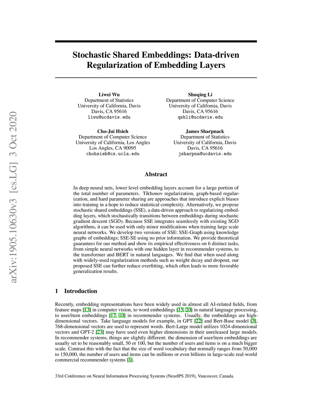 Stochastic Shared Embeddings: Data-driven Regularization of Embedding