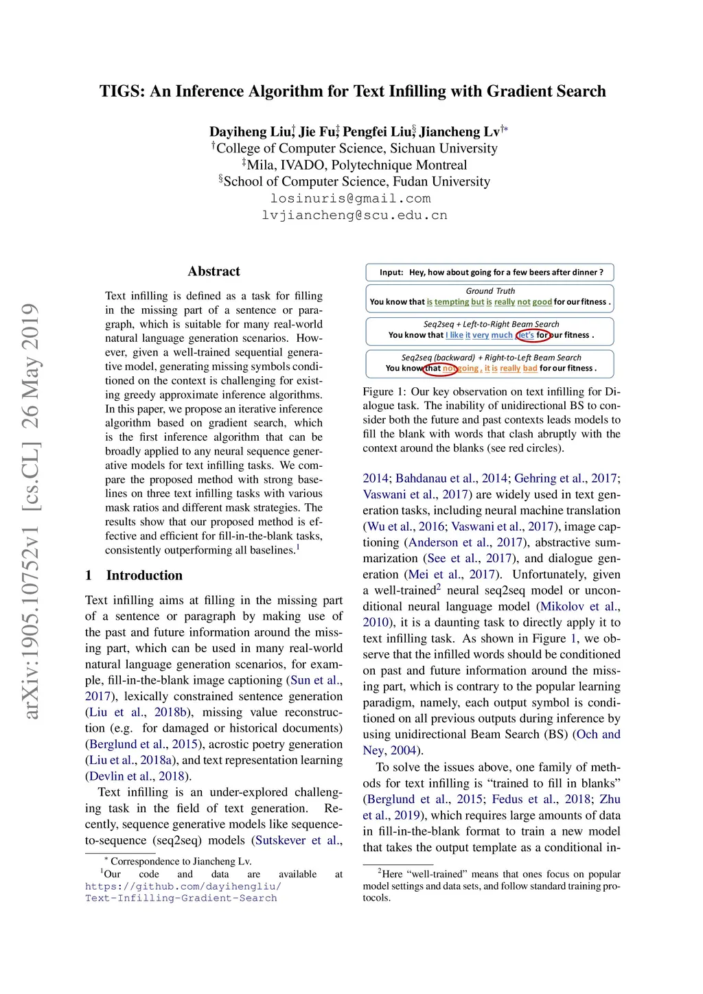 TIGS: An Inference Algorithm for Text Infilling with Gradient Search