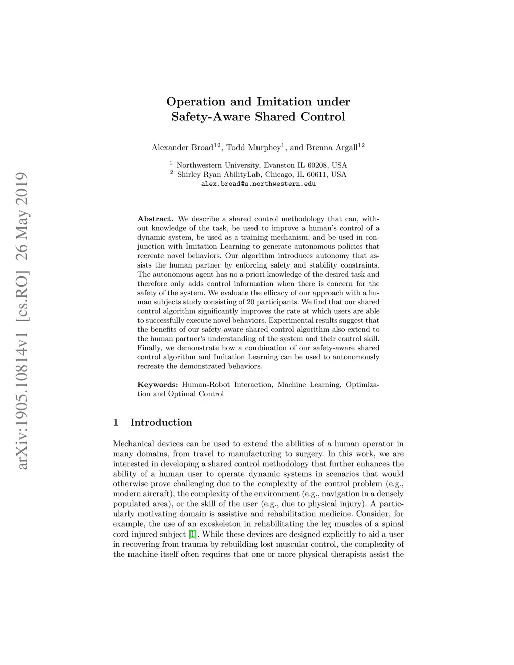 Operation and Imitation under Safety-Aware Shared Control