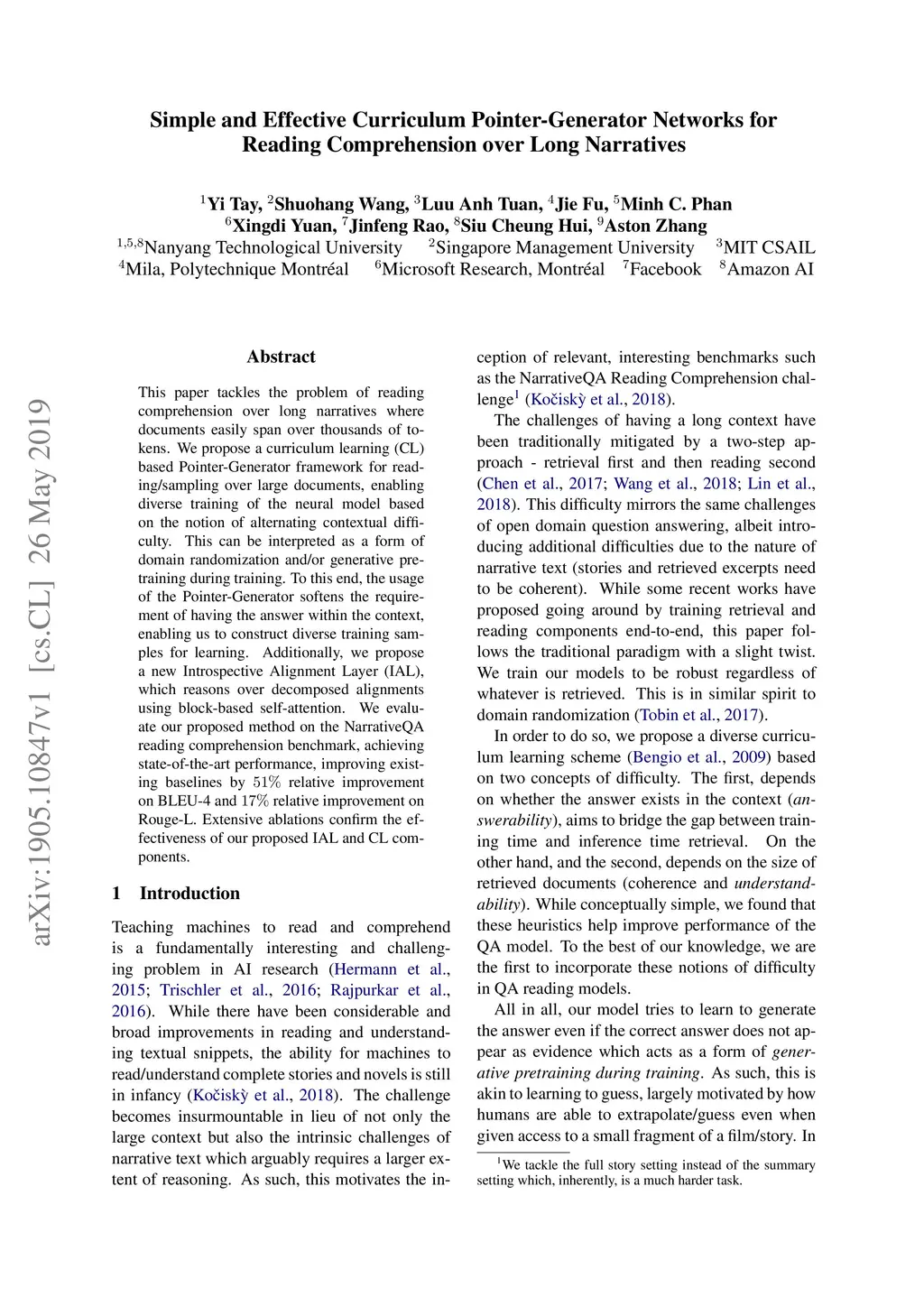 Simple and Effective Curriculum Pointer-Generator Networks for Reading