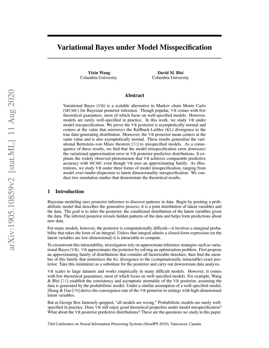Variational Bayes (VB) is a scalable alternative to Markov chain Monte Carlo (MCMC) for Bayesian posterior inference. Though popular, VB comes with few theoretical guarantees, most of which focus on well-specified models. However, models are rarely well-specified in practice. In this work, we study VB under model misspecification. We prove the VB posterior is asymptotically normal and centers at the value that minimizes the Kullback-Leibler (KL) divergence to the true data-generating distribution. Moreover, the VB posterior mean centers at the same value and is also asymptotically normal. These results generalize the variational Bernstein--von Mises theorem [29] to misspecified models. As a consequence of these results, we find that the model misspecification error dominates the variational approximation error in VB posterior predictive distributions. It explains the widely observed phenomenon that VB achieves comparable predictive accuracy with MCMC even though VB uses an approximating family. As illustrations, we study VB under three forms of model misspecification, ranging from model over-/under-dispersion to latent dimensionality misspecification. We conduct two simulation studies that demonstrate the theoretical results.