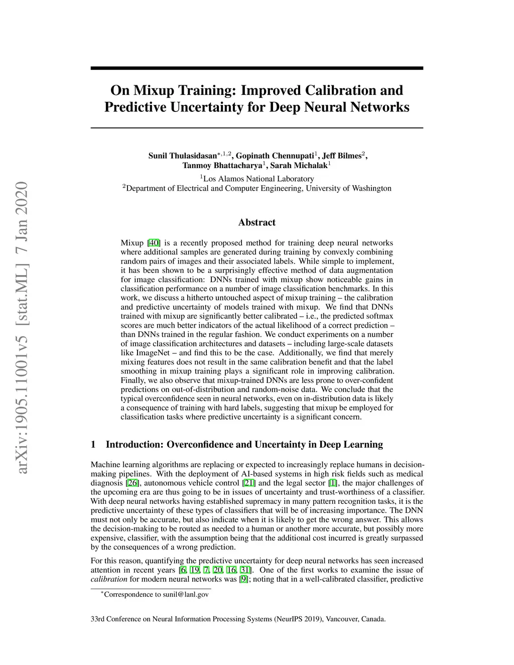 On Mixup Training: Improved Calibration and Predictive Uncertainty for