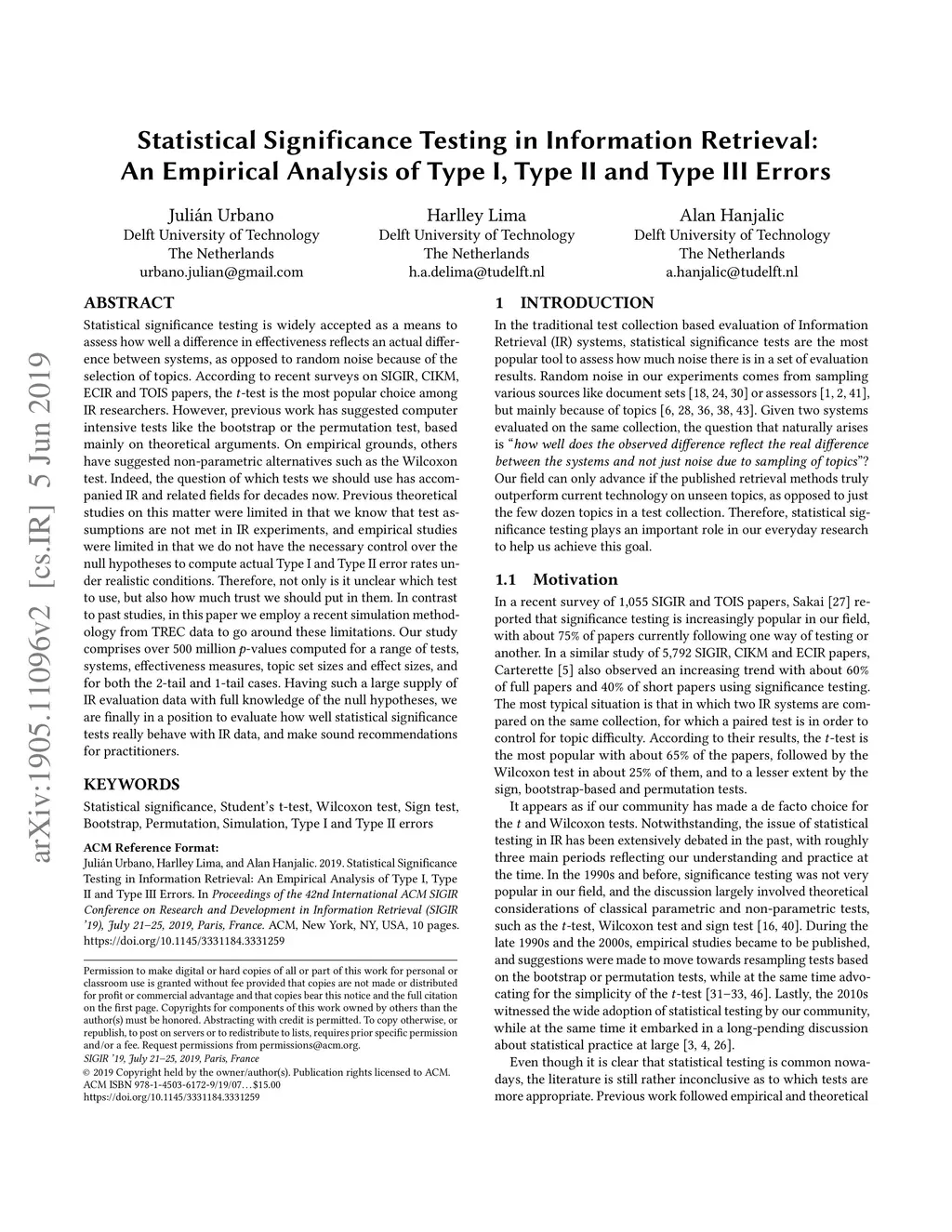 Statistical Significance Testing in Information Retrieval: An Empirical