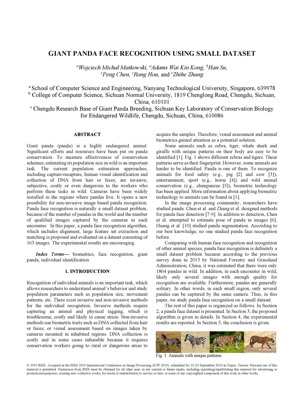 Giant Panda Face Recognition Using Small Dataset