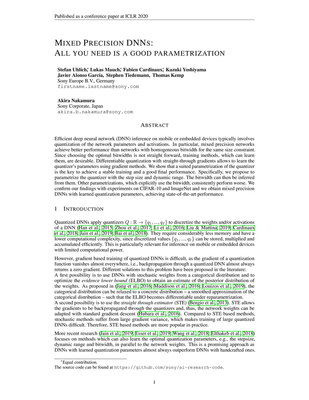 Mixed Precision DNNs: All you need is a good parametrization