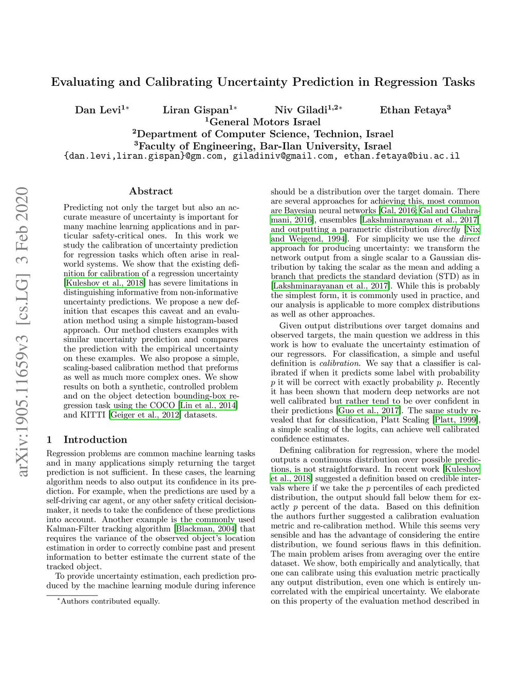 Predicting not only the target but also an accurate measure of uncertainty is important for many applications and in particular safety-critical ones. In this work we study the calibration of uncertainty prediction for regression tasks which often arise in real-world systems. We show that the existing approach for evaluating the calibration of a regression uncertainty [Kuleshov et al. 2018] has severe limitations in distinguishing informative from non-informative uncertainty predictions. We propose a new evaluation method that escapes this caveat using a simple histogram-based approach inspired by reliability diagrams used in classification tasks. Our method clusters examples with similar uncertainty prediction and compares the prediction with the empirical uncertainty on these examples. We also propose a simple scaling-based calibration that preforms well in our experimental tests. We show results on both a synthetic, controlled problem and on the object detection bounding-box regression task using the COCO and KITTI datasets.