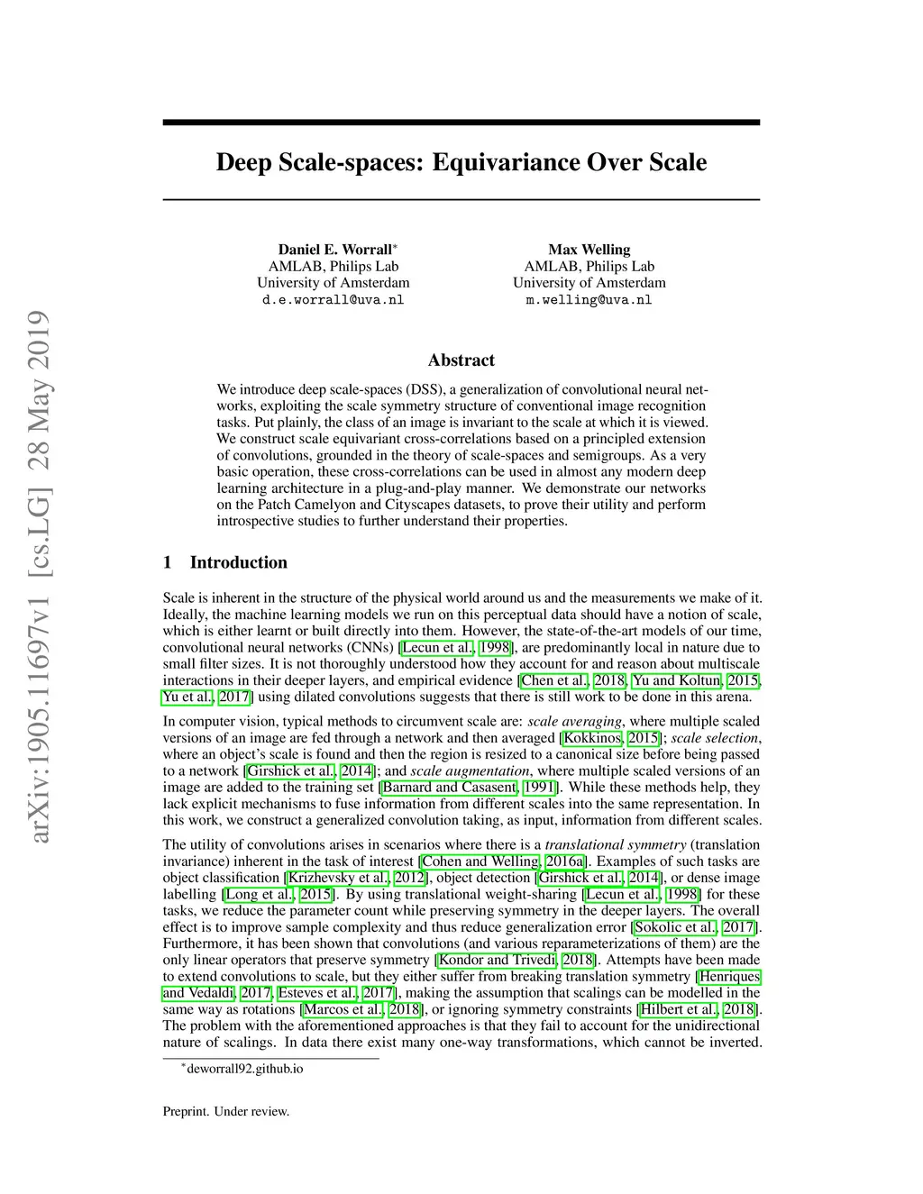 Deep Scale-spaces: Equivariance Over Scale
