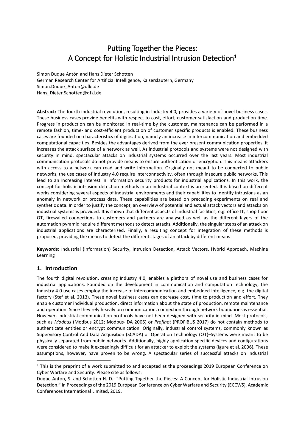 Putting Together the Pieces: A Concept for Holistic Industrial Intrusion