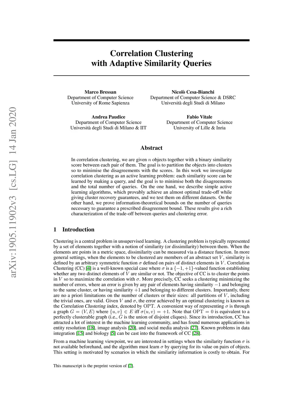 In correlation clustering, we are given objects together with a binary similarity score between each pair of them. The goal is to partition the objects into clusters so to minimise the disagreements with the scores. In this work we investigate correlation clustering as an active learning problem: each similarity score can be learned by making a query, and the goal is to minimise both the disagreements and the total number of queries. On the one hand, we describe simple active learning algorithms, which provably achieve an almost optimal trade-off while giving cluster recovery guarantees, and we test them on different datasets. On the other hand, we prove information-theoretical bounds on the number of queries necessary to guarantee a prescribed disagreement bound. These results give a rich characterization of the trade-off between queries and clustering error.