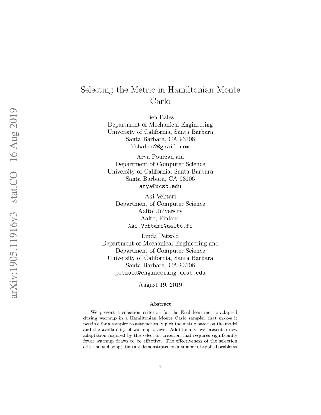 We present a selection criterion for the Euclidean metric adapted during warmup in a Hamiltonian Monte Carlo sampler that makes it possible for a sampler to automatically pick the metric based on the model and the availability of warmup draws. Additionally, we present a new adaptation inspired by the selection criterion that requires significantly fewer warmup draws to be effective. The effectiveness of the selection criterion and adaptation are demonstrated on a number of applied problems. An implementation for the Stan probabilistic programming language is provided.