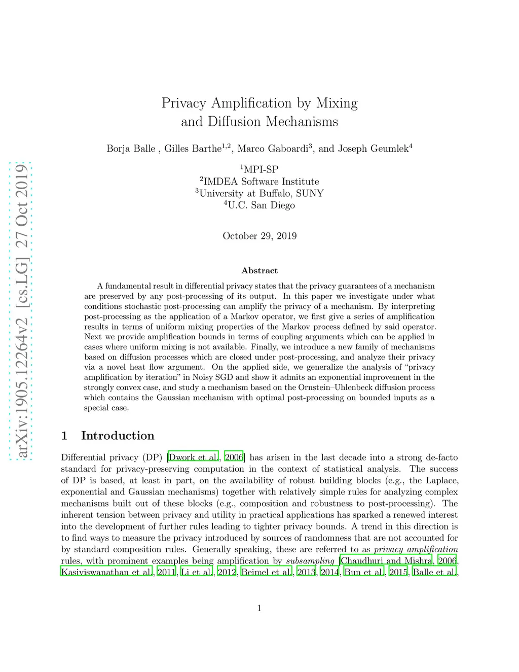 Privacy Amplification by Mixing and Diffusion Mechanisms