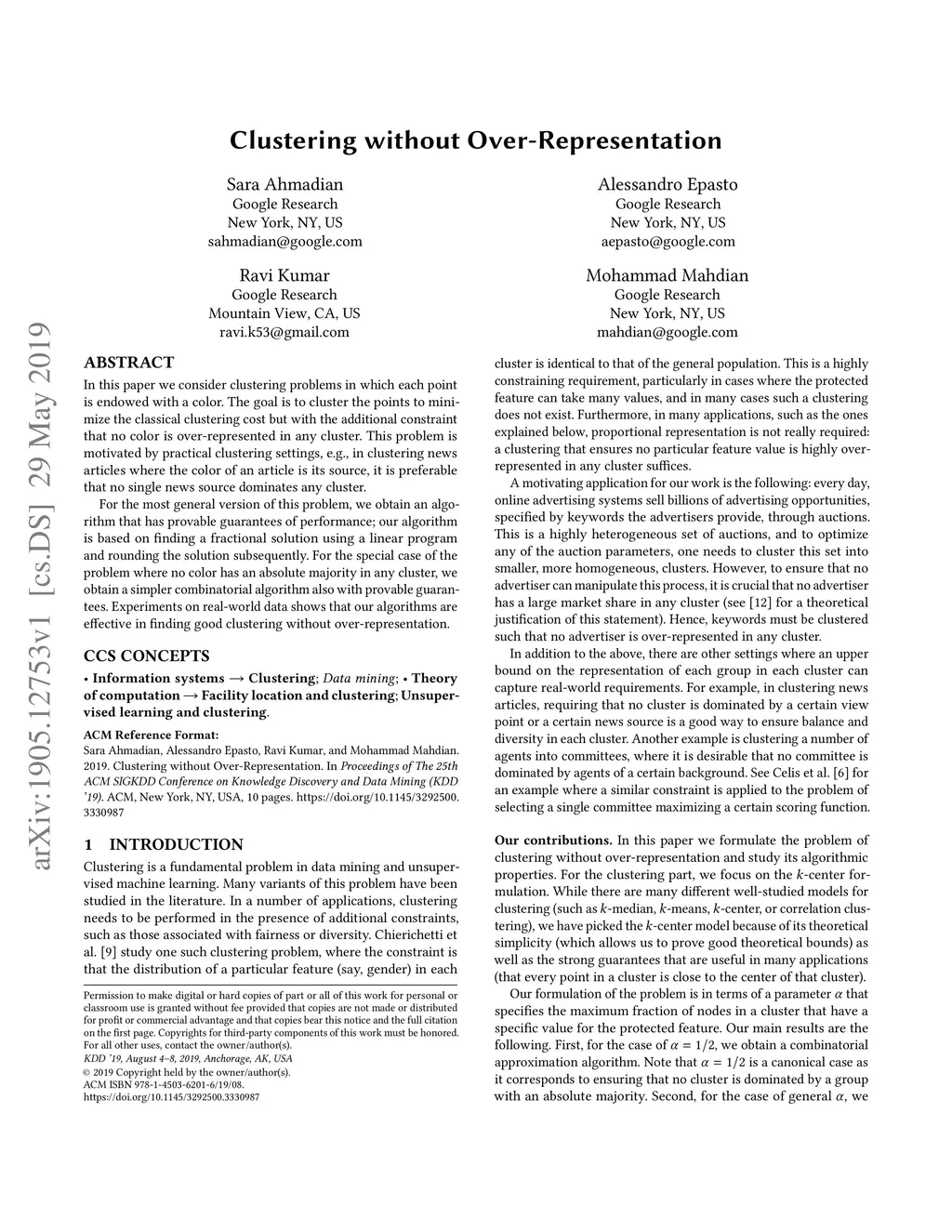 Clustering without Over-Representation