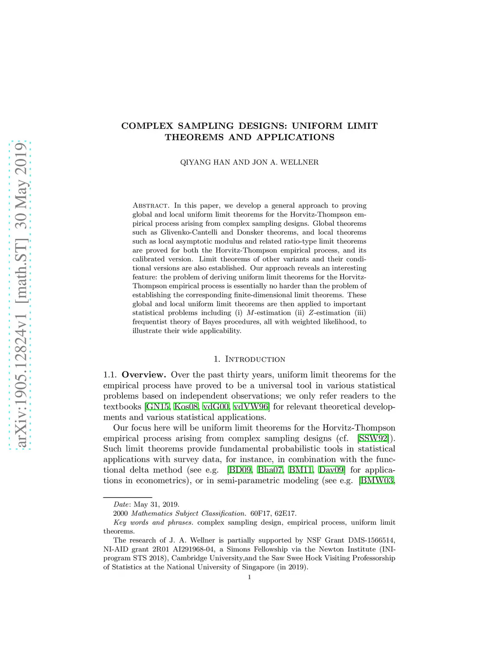 Complex sampling designs: uniform limit theorems and applications