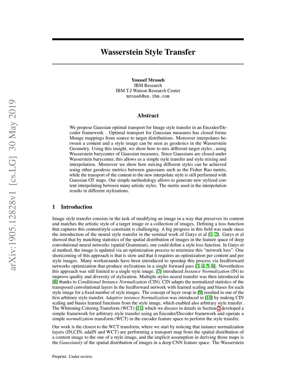 Wasserstein Style Transfer