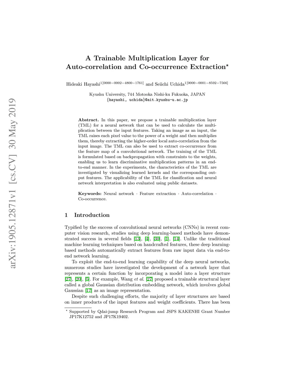 A Trainable Multiplication Layer for Auto-correlation and Co-occurrence