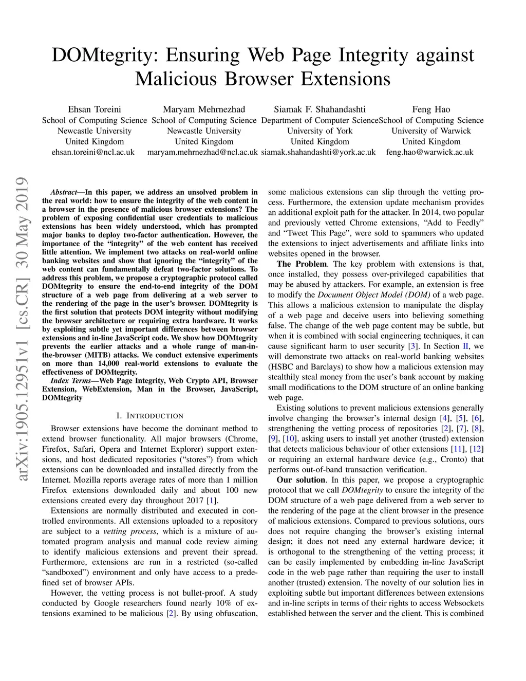 DOMtegrity: Ensuring Web Page Integrity against Malicious Browser