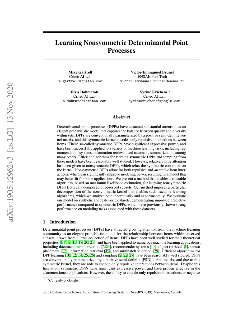 Learning Nonsymmetric Determinantal Point Processes