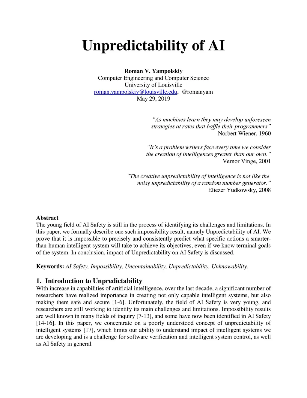 Unpredictability of AI