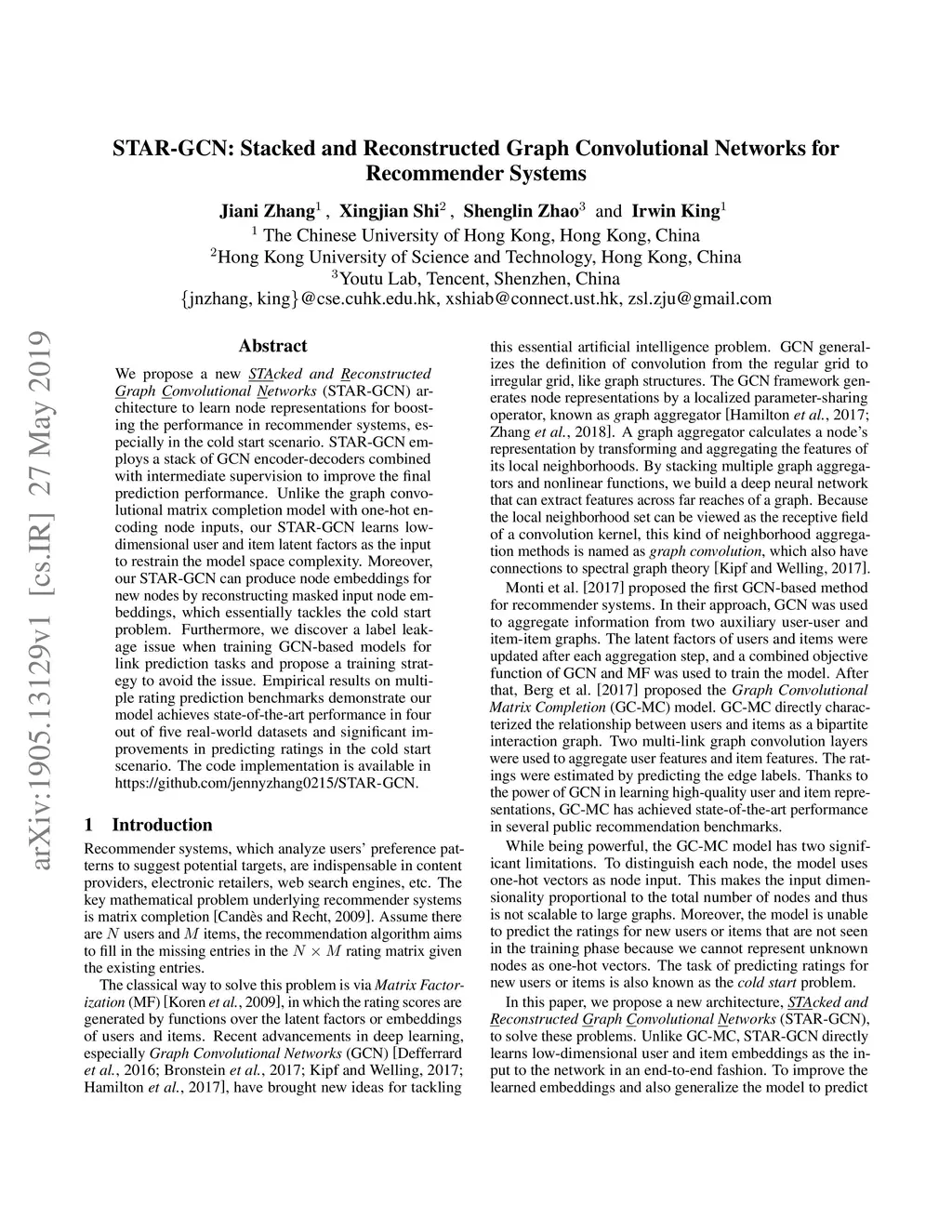 STAR-GCN: Stacked and Reconstructed Graph Convolutional Networks for