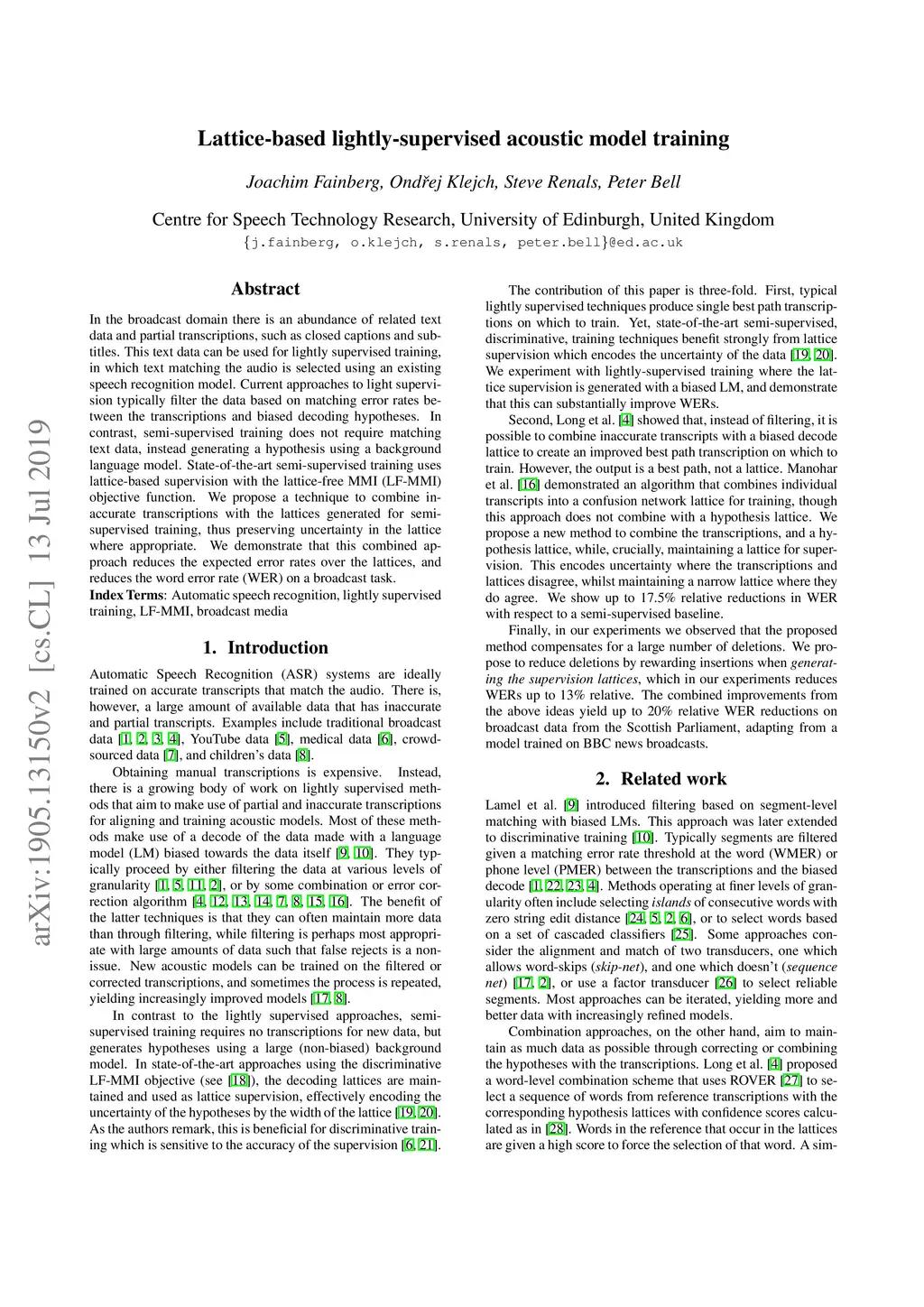Lattice-based lightly-supervised acoustic model training