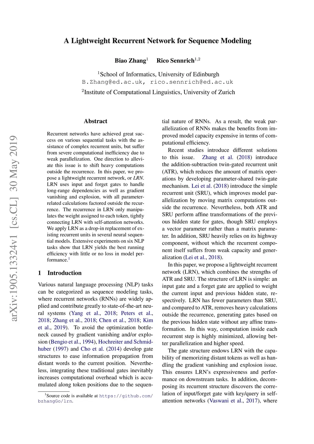A Lightweight Recurrent Network for Sequence Modeling