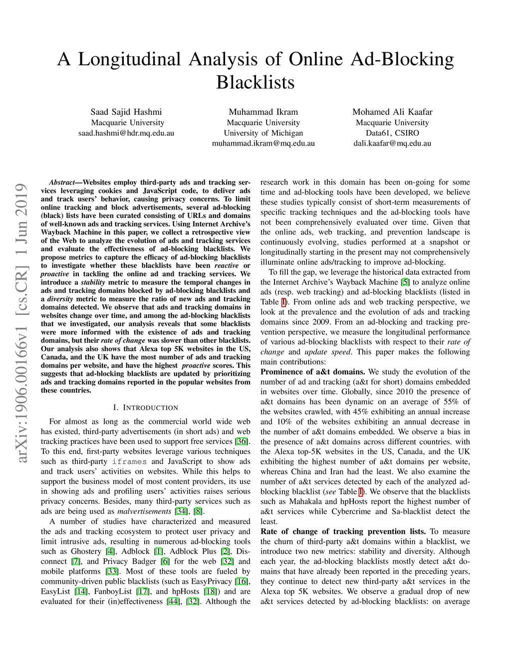 A Longitudinal Analysis of Online Ad-Blocking Blacklists