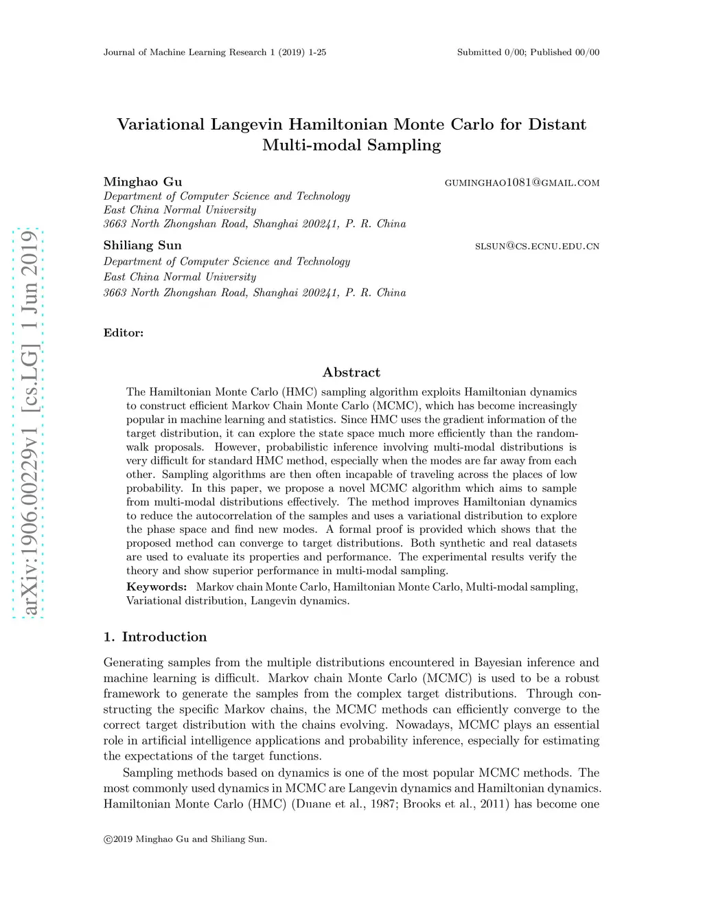 The Hamiltonian Monte Carlo (HMC) sampling algorithm exploits Hamiltonian dynamics to construct efficient Markov Chain Monte Carlo (MCMC), which has become increasingly popular in machine learning and statistics. Since HMC uses the gradient information of the target distribution, it can explore the state space much more efficiently than the random-walk proposals. However, probabilistic inference involving multi-modal distributions is very difficult for standard HMC method, especially when the modes are far away from each other. Sampling algorithms are then often incapable of traveling across the places of low probability. In this paper, we propose a novel MCMC algorithm which aims to sample from multi-modal distributions effectively. The method improves Hamiltonian dynamics to reduce the autocorrelation of the samples and uses a variational distribution to explore the phase space and find new modes. A formal proof is provided which shows that the proposed method can converge to target distributions. Both synthetic and real datasets are used to evaluate its properties and performance. The experimental results verify the theory and show superior performance in multi-modal sampling.