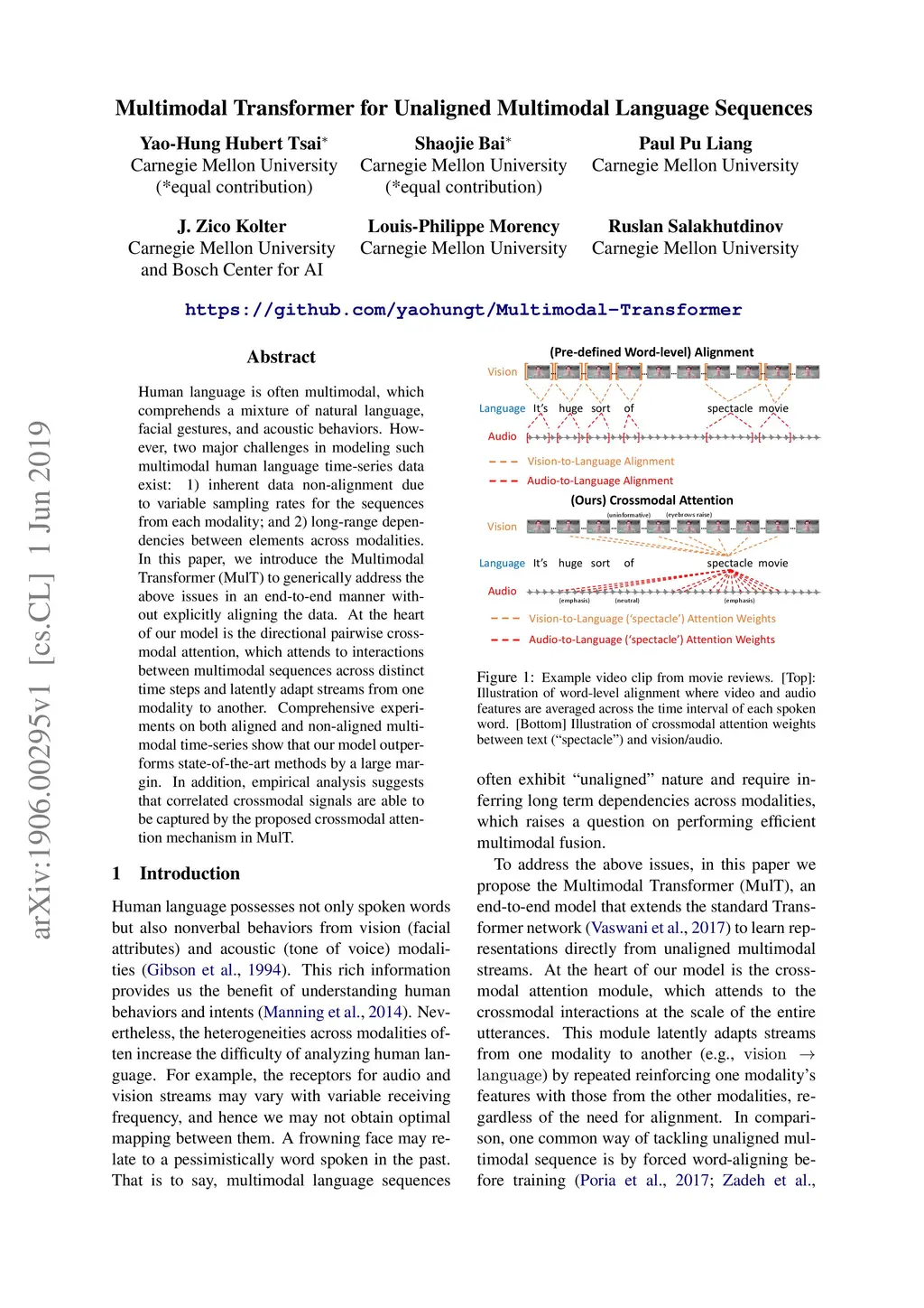 Multimodal Transformer for Unaligned Multimodal Language Sequences