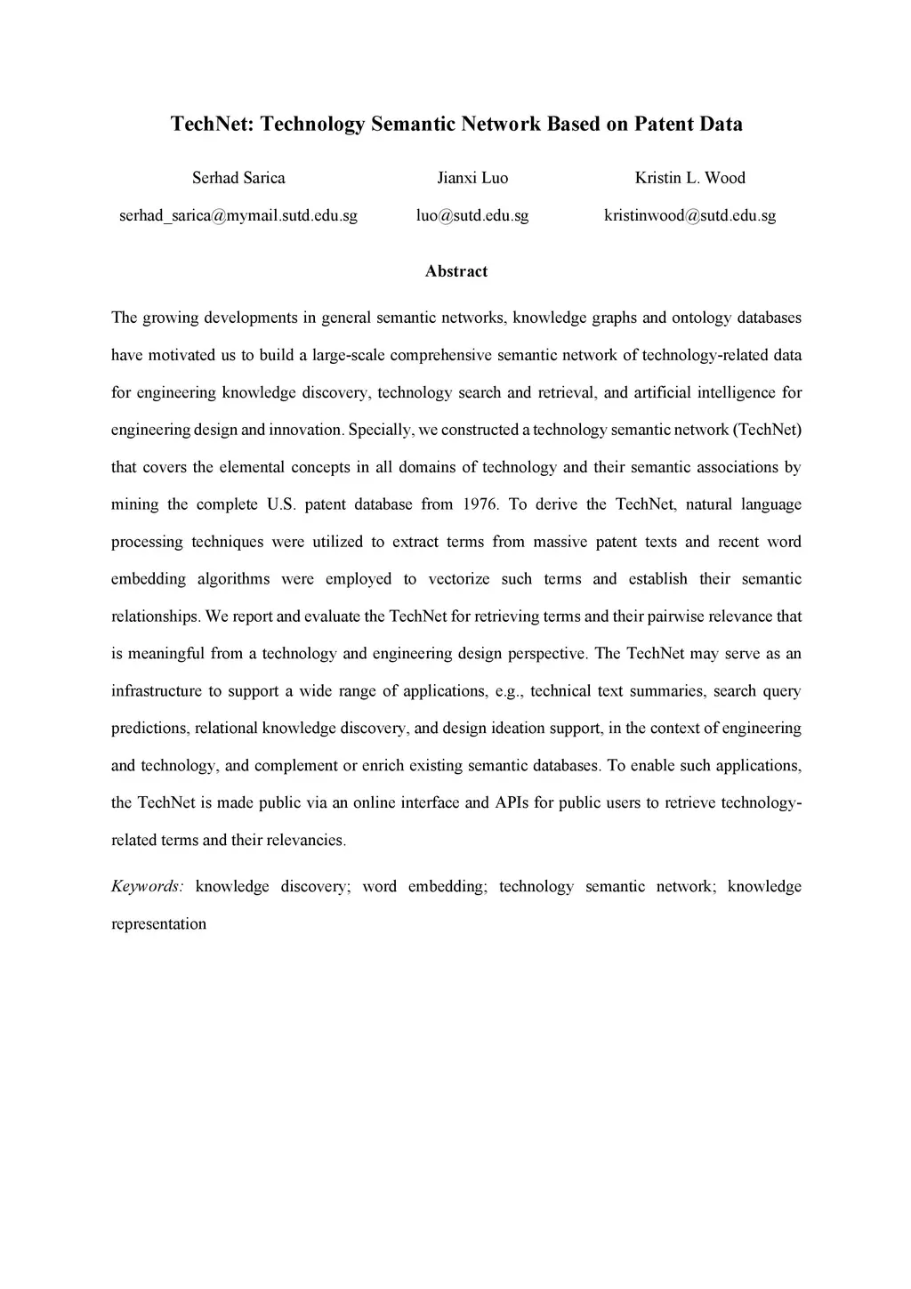 The growing developments in general semantic networks, knowledge graphs and ontology databases have motivated us to build a large-scale comprehensive semantic network of technology-related data for engineering knowledge discovery, technology search and retrieval, and artificial intelligence for engineering design and innovation. Specially, we constructed a technology semantic network (TechNet) that covers the elemental concepts in all domains of technology and their semantic associations by mining the complete U.S. patent database from 1976. To derive the TechNet, natural language processing techniques were utilized to extract terms from massive patent texts and recent word embedding algorithms were employed to vectorize such terms and establish their semantic relationships. We report and evaluate the TechNet for retrieving terms and their pairwise relevance that is meaningful from a technology and engineering design perspective. The TechNet may serve as an infrastructure to support a wide range of applications, e.g., technical text summaries, search query predictions, relational knowledge discovery, and design ideation support, in the context of engineering and technology, and complement or enrich existing semantic databases. To enable such applications, the TechNet is made public via an online interface and APIs for public users to retrieve technology-related terms and their relevancies.