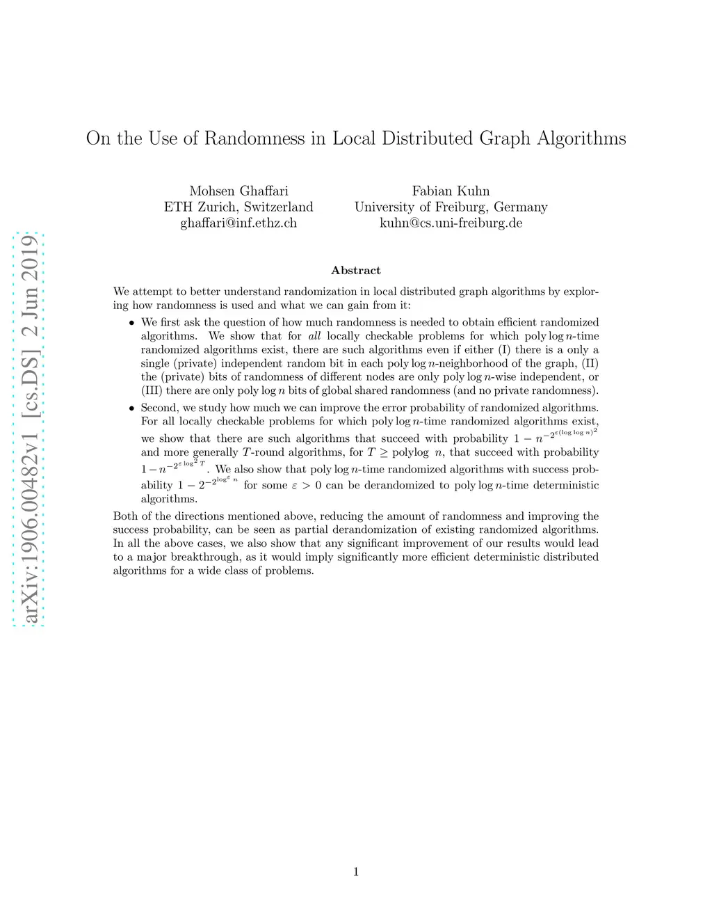 We attempt to better understand randomization in local distributed graph algorithms by exploring how randomness is used and what we can gain from it: - We first ask the question of how much randomness is needed to obtain efficient randomized algorithms. We show that for all locally checkable problems for which polylog -time randomized algorithms exist, there are such algorithms even if either (I) there is a only a single (private) independent random bit in each polylog -neighborhood of the graph, (II) the (private) bits of randomness of different nodes are only polylog -wise independent, or (III) there are only polylog bits of global shared randomness (and no private randomness). - Second, we study how much we can improve the error probability of randomized algorithms. For all locally checkable problems for which polylog -time randomized algorithms exist, we show that there are such algorithms that succeed with probability and more generally -round algorithms, for polylog , that succeed with probability . We also show that polylog -time randomized algorithms with success probability for some can be derandomized to polylog -time deterministic algorithms. Both of the directions mentioned above, reducing the amount of randomness and improving the success probability, can be seen as partial derandomization of existing randomized algorithms. In all the above cases, we also show that any significant improvement of our results would lead to a major breakthrough, as it would imply significantly more efficient deterministic distributed algorithms for a wide class of problems.