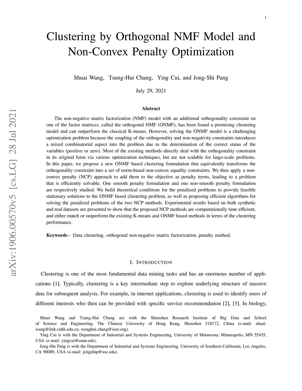 Clustering by Orthogonal NMF Model and Non-Convex Penalty Optimization
