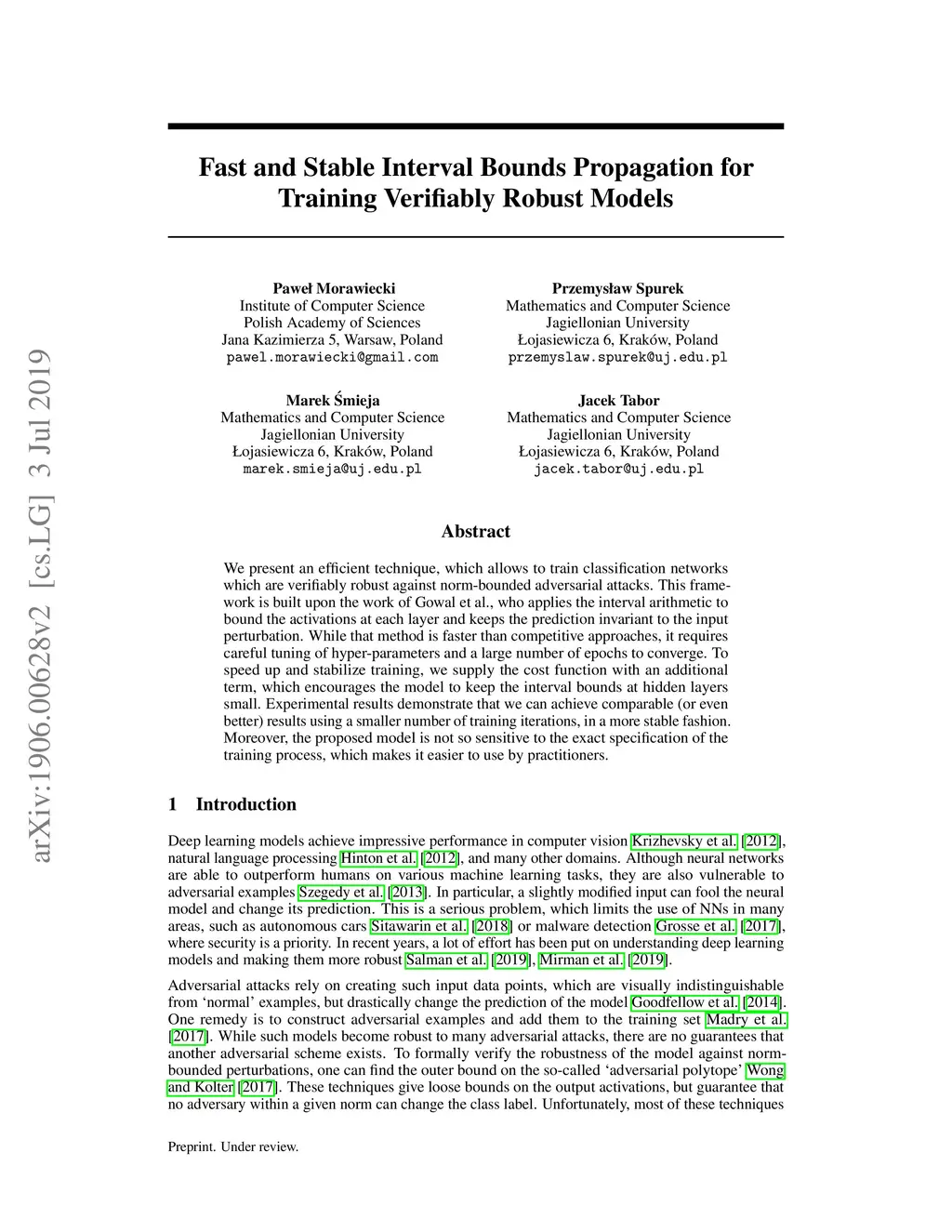 Fast and Stable Interval Bounds Propagation for Training Verifiably