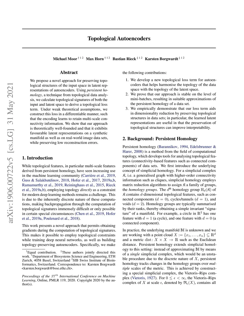 We propose a novel approach for preserving topological structures of the input space in latent representations of autoencoders. Using persistent homology, a technique from topological data analysis, we calculate topological signatures of both the input and latent space to derive a topological loss term. Under weak theoretical assumptions, we construct this loss in a differentiable manner, such that the encoding learns to retain multi-scale connectivity information. We show that our approach is theoretically well-founded and that it exhibits favourable latent representations on a synthetic manifold as well as on real-world image data sets, while preserving low reconstruction errors.