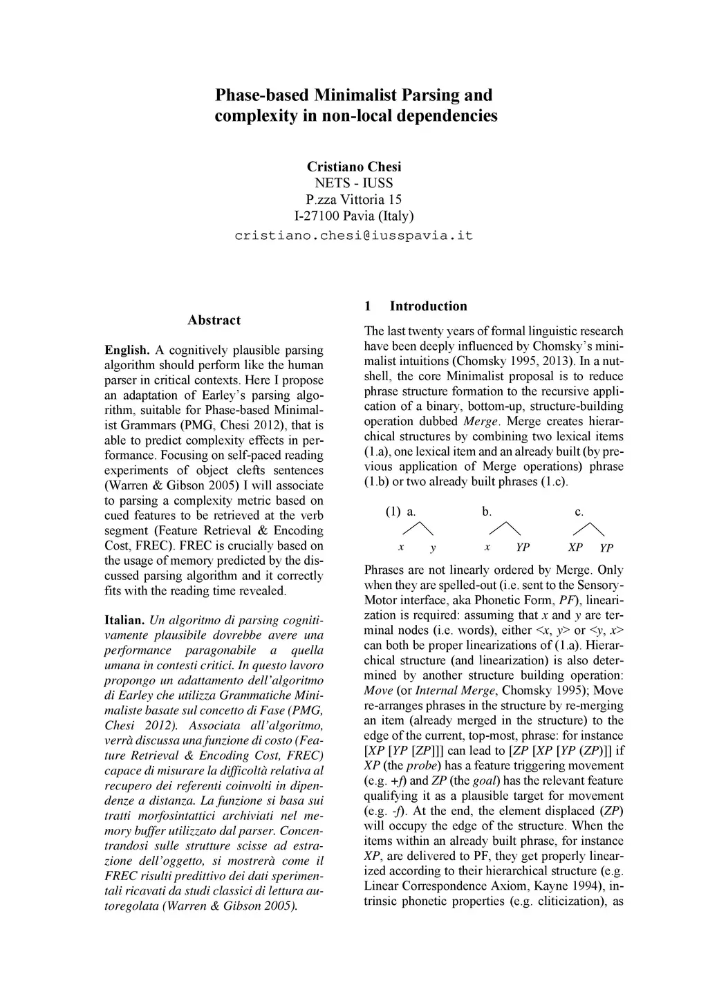 A cognitively plausible parsing algorithm should perform like the human parser in critical contexts. Here I propose an adaptation of Earley's parsing algorithm, suitable for Phase-based Minimalist Grammars (PMG, Chesi 2012), that is able to predict complexity effects in performance. Focusing on self-paced reading experiments of object clefts sentences (Warren & Gibson 2005) I will associate to parsing a complexity metric based on cued features to be retrieved at the verb segment (Feature Retrieval & Encoding Cost, FREC). FREC is crucially based on the usage of memory predicted by the discussed parsing algorithm and it correctly fits with the reading time revealed.