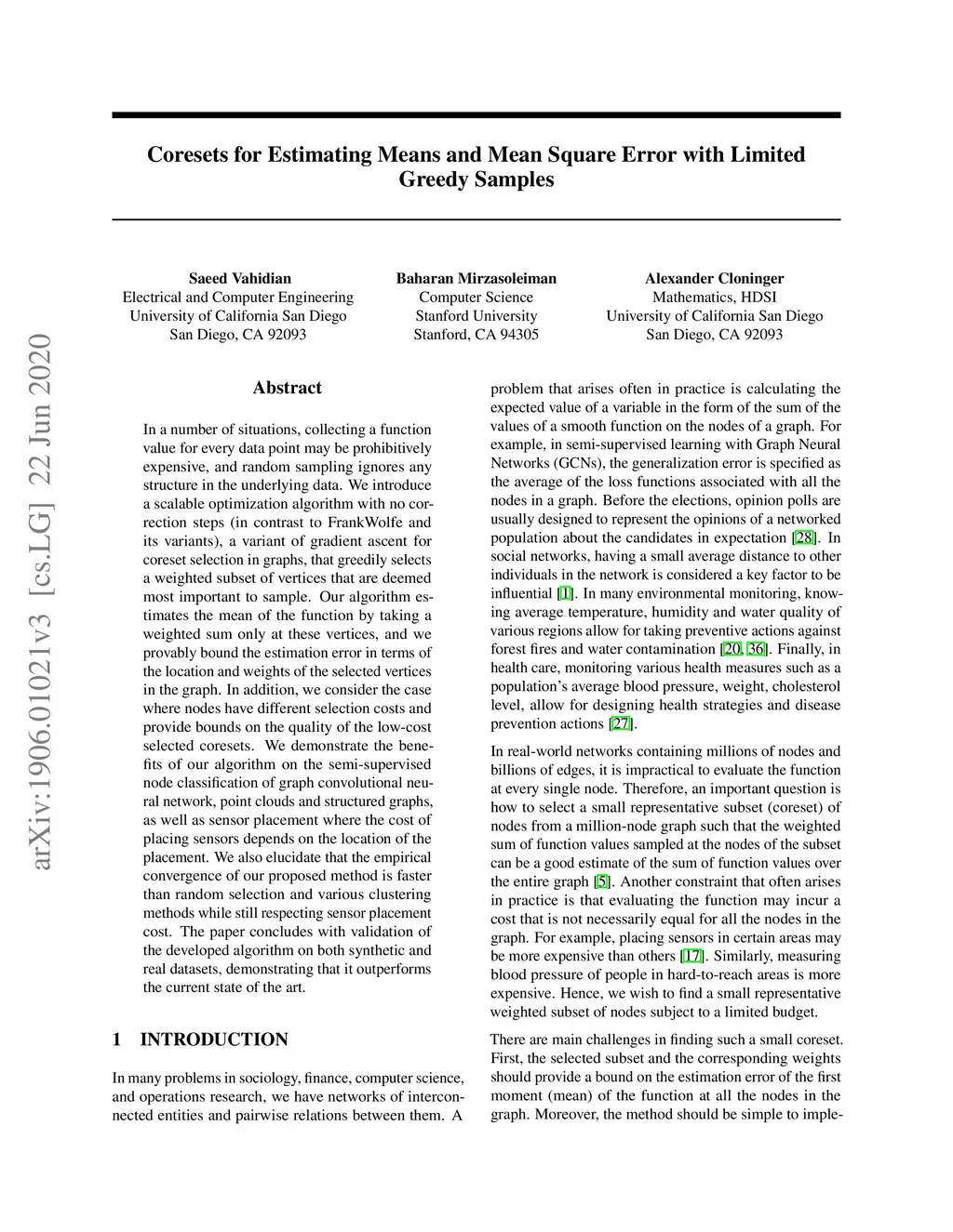 Coresets for Estimating Means and Mean Square Error with Limited Greedy