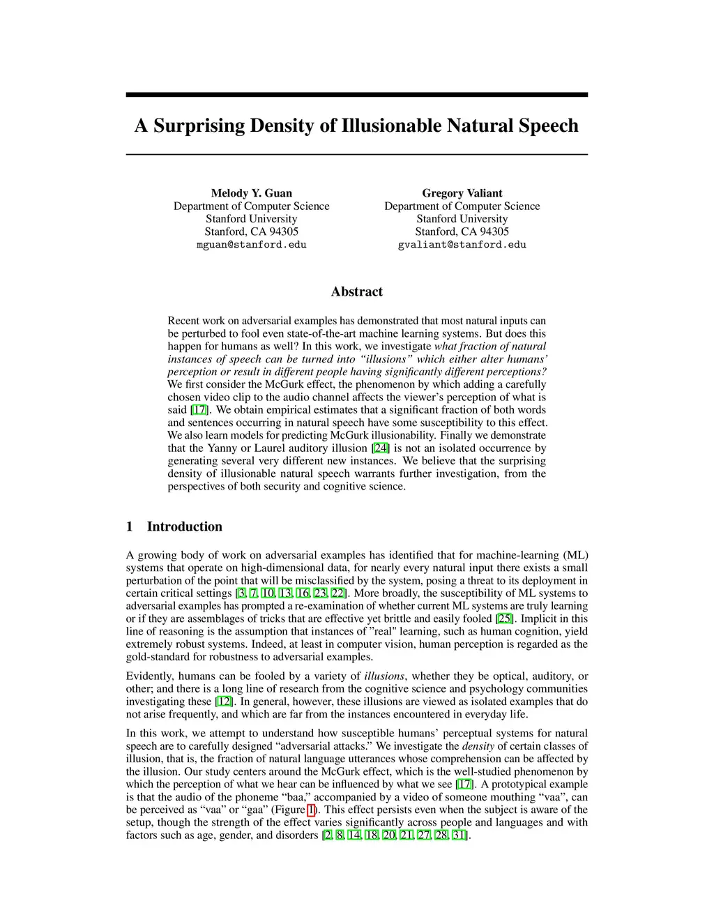 Recent work on adversarial examples has demonstrated that most natural inputs can be perturbed to fool even state-of-the-art machine learning systems. But does this happen for humans as well? In this work, we investigate: what fraction of natural instances of speech can be turned into "illusions" which either alter humans' perception or result in different people having significantly different perceptions? We first consider the McGurk effect, the phenomenon by which adding a carefully chosen video clip to the audio channel affects the viewer's perception of what is said (McGurk and MacDonald, 1976). We obtain empirical estimates that a significant fraction of both words and sentences occurring in natural speech have some susceptibility to this effect. We also learn models for predicting McGurk illusionability. Finally we demonstrate that the Yanny or Laurel auditory illusion (Pressnitzer et al., 2018) is not an isolated occurrence by generating several very different new instances. We believe that the surprising density of illusionable natural speech warrants further investigation, from the perspectives of both security and cognitive science. Supplementary videos are available at: https://www.youtube.com/playlist?list=PLaX7t1K-e_fF2iaenoKznCatm0RC37B_k.