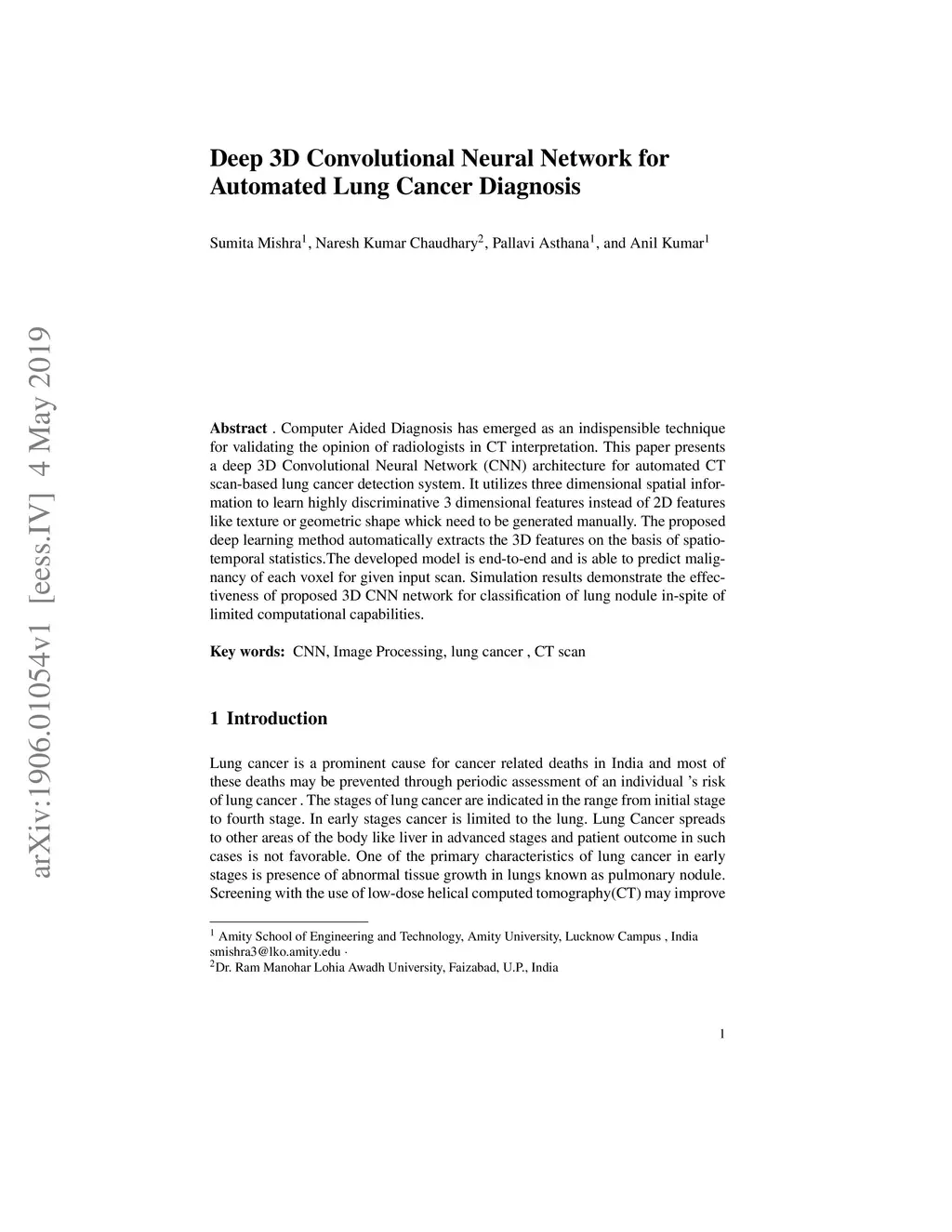 Deep 3D Convolutional Neural Network for Automated Lung Cancer Diagnosis