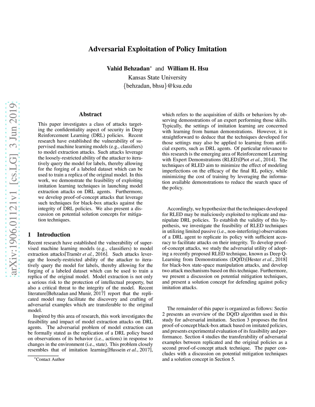 Adversarial Exploitation of Policy Imitation