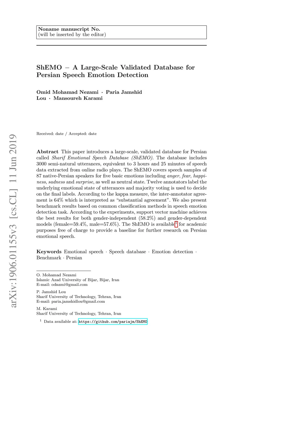 ShEMO -- A Large-Scale Validated Database for Persian Speech Emotion