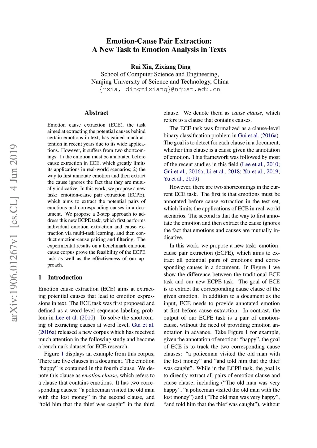 Emotion-Cause Pair Extraction: A New Task to Emotion Analysis in Texts