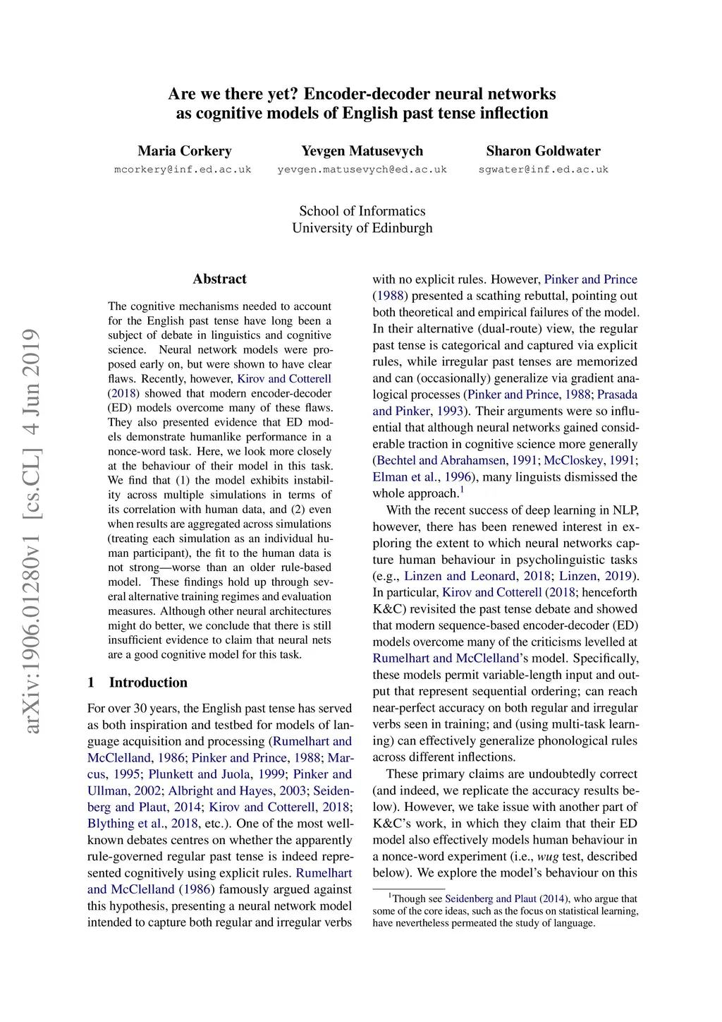 The cognitive mechanisms needed to account for the English past tense have long been a subject of debate in linguistics and cognitive science. Neural network models were proposed early on, but were shown to have clear flaws. Recently, however, Kirov and Cotterell (2018) showed that modern encoder-decoder (ED) models overcome many of these flaws. They also presented evidence that ED models demonstrate humanlike performance in a nonce-word task. Here, we look more closely at the behaviour of their model in this task. We find that (1) the model exhibits instability across multiple simulations in terms of its correlation with human data, and (2) even when results are aggregated across simulations (treating each simulation as an individual human participant), the fit to the human data is not strong---worse than an older rule-based model. These findings hold up through several alternative training regimes and evaluation measures. Although other neural architectures might do better, we conclude that there is still insufficient evidence to claim that neural nets are a good cognitive model for this task.