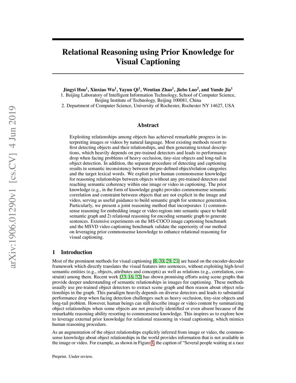 Relational Reasoning using Prior Knowledge for Visual Captioning