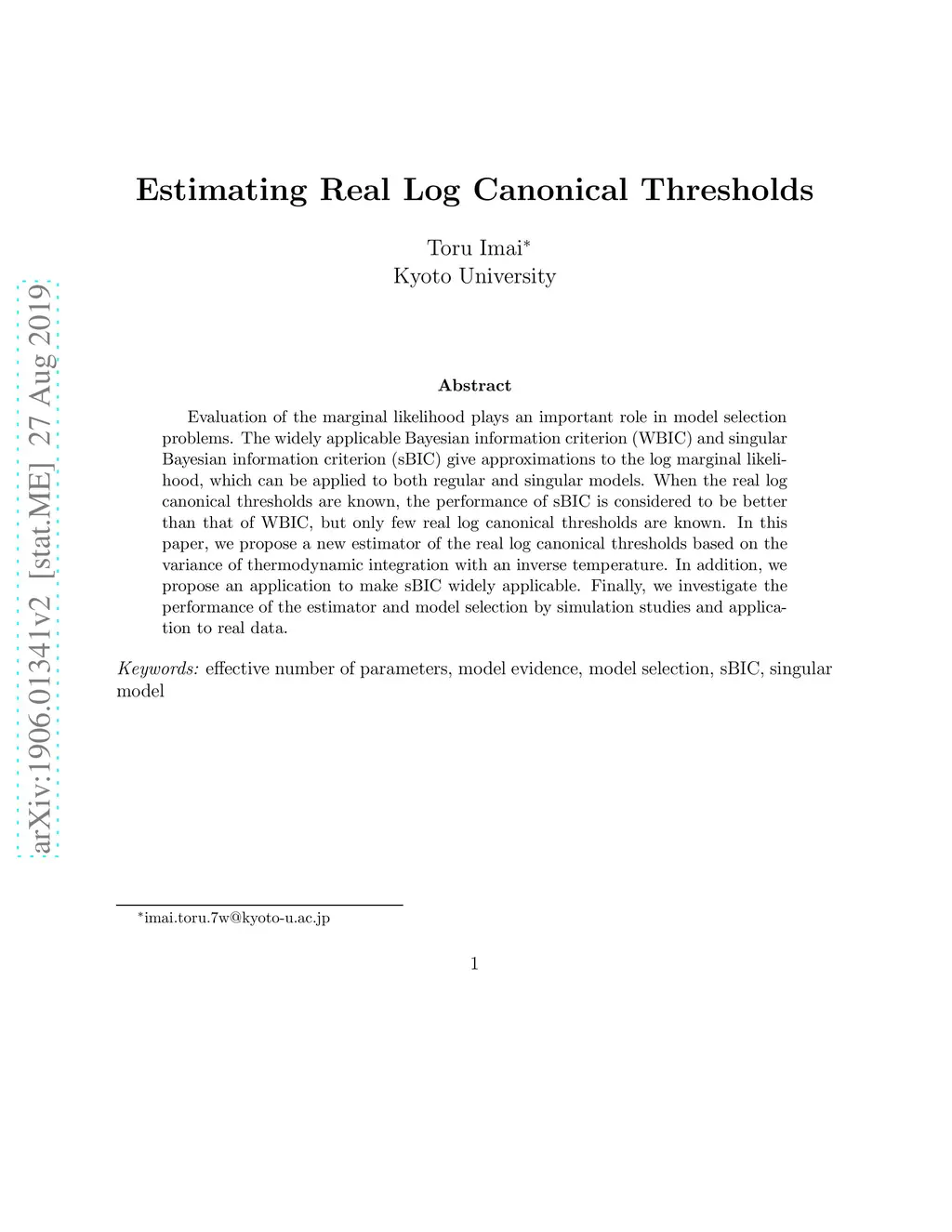 Evaluation of the marginal likelihood plays an important role in model selection problems. The widely applicable Bayesian information criterion (WBIC) and singular Bayesian information criterion (sBIC) give approximations to the log marginal likelihood, which can be applied to both regular and singular models. When the real log canonical thresholds are known, the performance of sBIC is considered to be better than that of WBIC, but only few real log canonical thresholds are known. In this paper, we propose a new estimator of the real log canonical thresholds based on the variance of thermodynamic integration with an inverse temperature. In addition, we propose an application to make sBIC widely applicable. Finally, we investigate the performance of the estimator and model selection by simulation studies and application to real data.