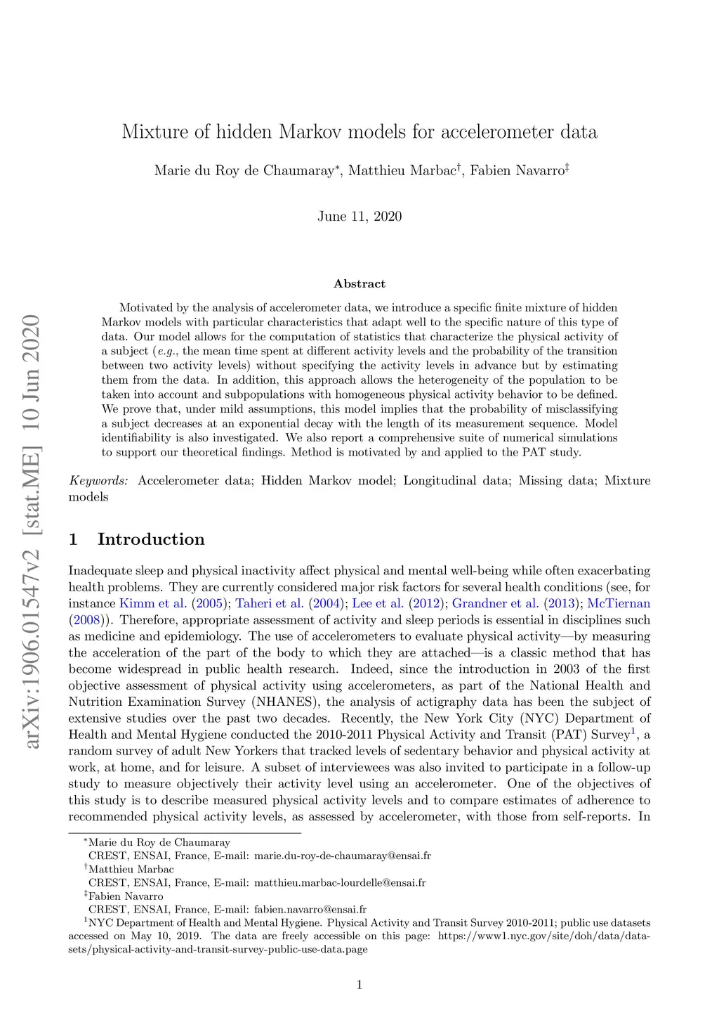 Mixture of hidden Markov models for accelerometer data