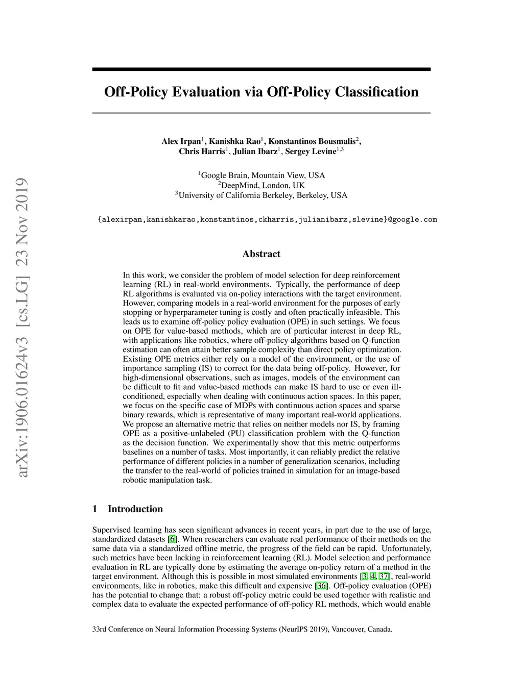 Off-Policy Evaluation via Off-Policy Classification