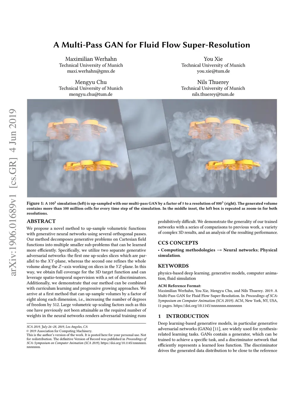 A Multi-Pass GAN for Fluid Flow Super-Resolution