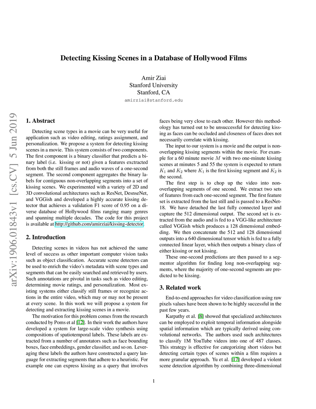 Detecting Kissing Scenes in a Database of Hollywood Films