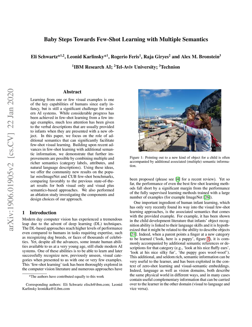 Baby steps towards few-shot learning with multiple semantics