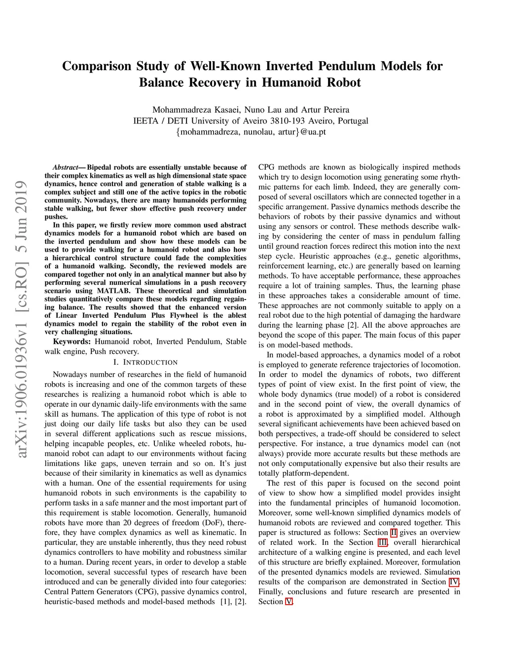 Comparison Study of Well-Known Inverted Pendulum Models for Balance
