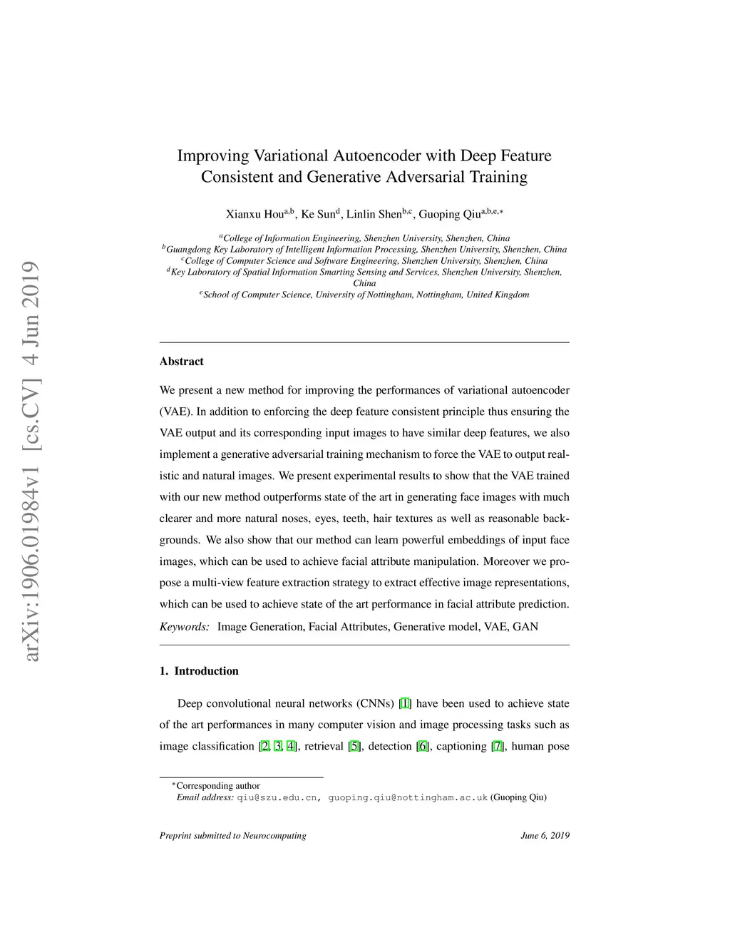 Improving Variational Autoencoder with Deep Feature Consistent and